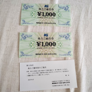 100株で1枚、1年以上継続保有で1枚の合計2枚です。有効期限は2024年12月31日まで。さーて、ケーズデンキで何を買おうかな。これまでキッチンスケールやスマホ充電器などを買う時に優待券を使いました。どっちもよく使ってて役立つもので、いい買い物できたとホクホクです。